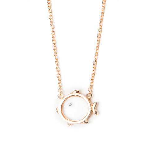 So versatile, this gold fish necklace can be worn alone or layered for an updated look. Housed between two round pieces of glass is the fish's eye, made from a single Swarovski crystal. This classic fish pendant is unlike any other- it gives back!